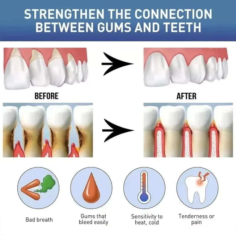 Revitalize your oral health with our advanced gum repair serum, designed to alleviate sore gums and combat dental caries while promoting deep cleaning for a bright, healthy smile.